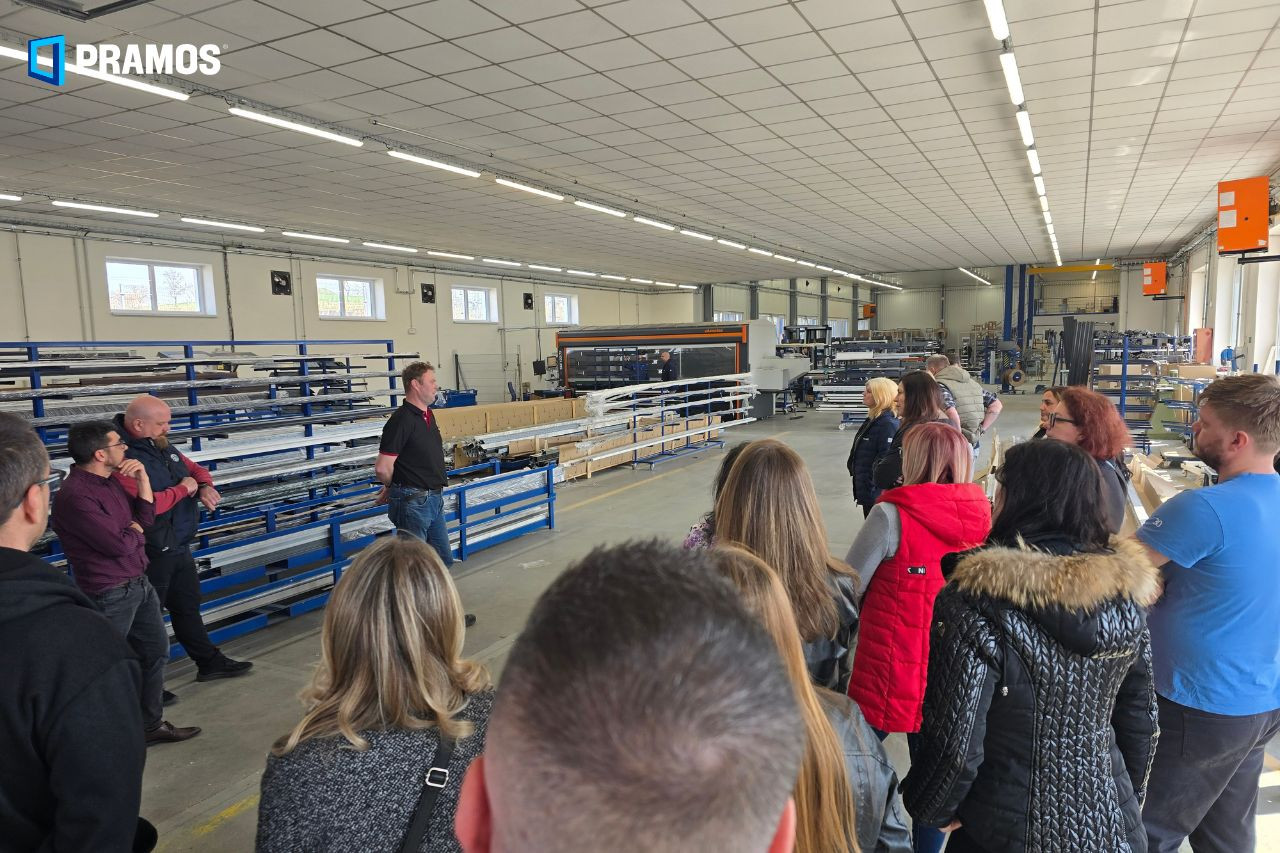 Hlavní pozornost patřila novému plastovému HS portálu FUSION, hliníkovým systémům PROCURAL a Schüco i správným postupům montáže. Nezůstalo ale jen u teorie – součástí programu byla i prohlídka výroby profilů a samotné produkce PVC a hliníkových oken.